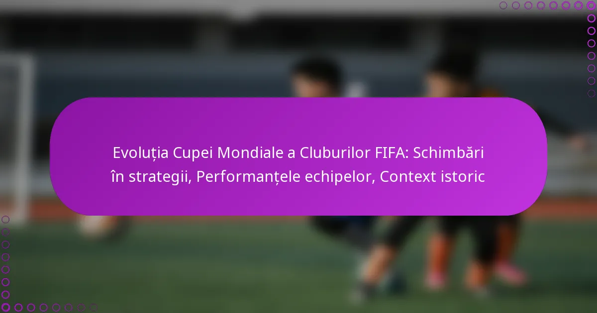 Strategiile din Cupa FIFA pentru Cluburi au evoluat semnificativ de-a lungul anilor, reflectând schimbările în formațiile echipelor, stilurile de antrenament și integrarea tehnologiei. Aceste dezvoltări au influențat modul în care echipele performează pe scena globală, cu grade variate de succes și dificultate între participanți.