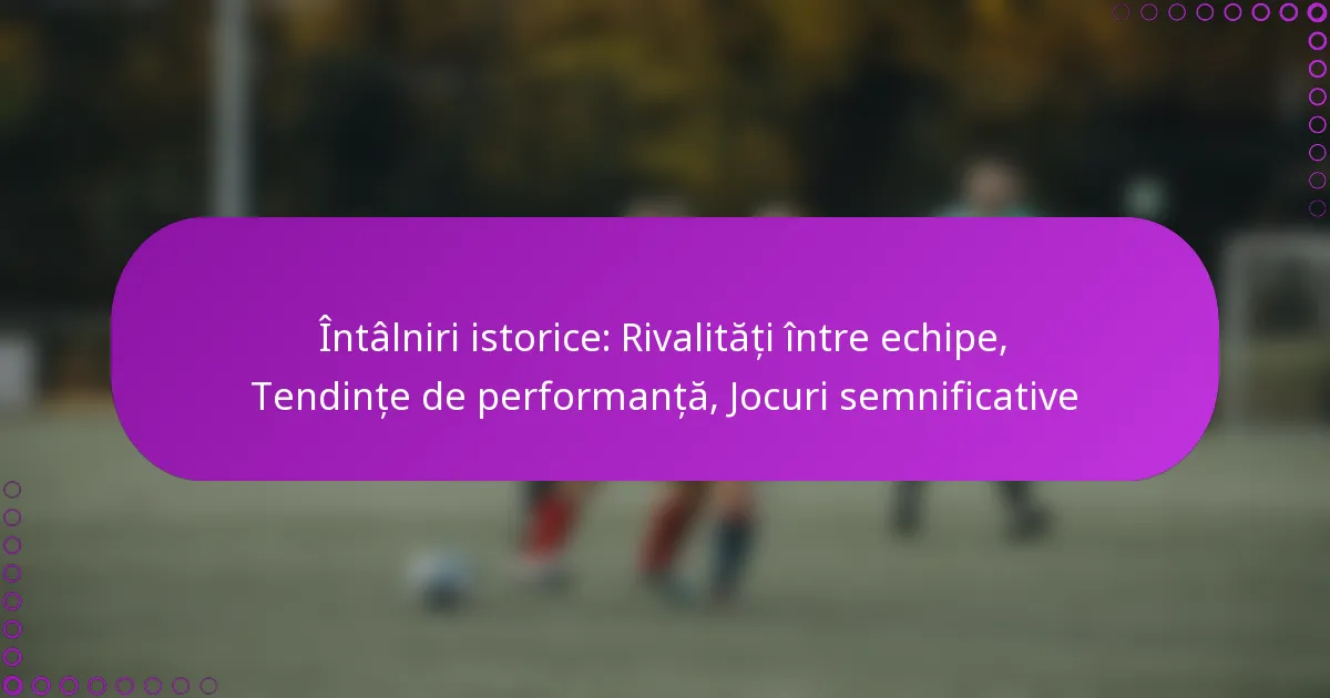 Întâlniri istorice: Rivalități între echipe, Tendințe de performanță, Jocuri semnificative