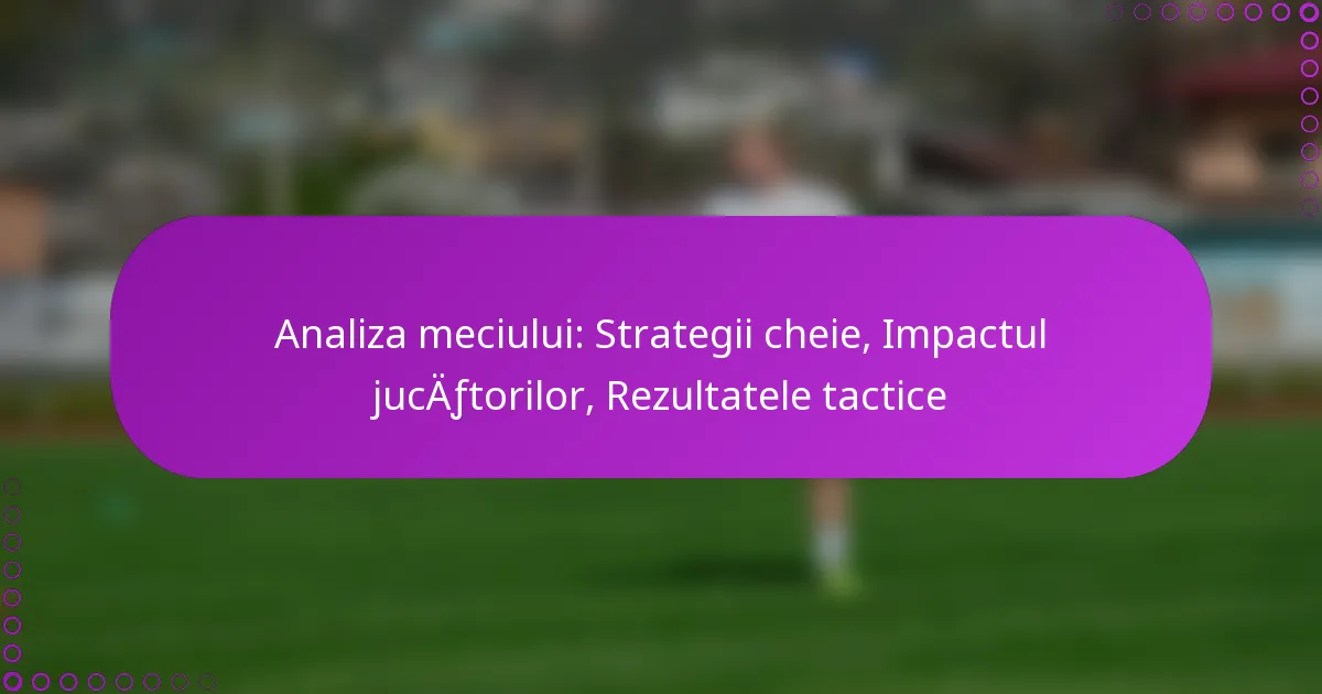 Analiza meciului: Strategii cheie, Impactul jucătorilor, Rezultatele tactice