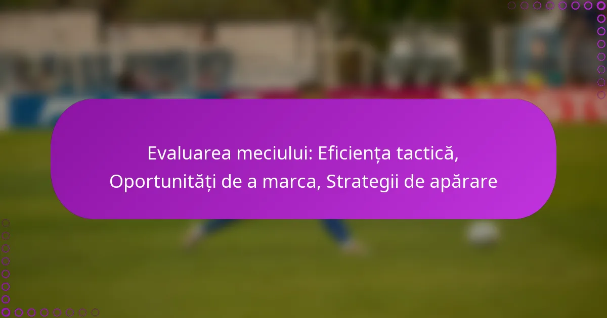 Evaluarea meciului: Eficiența tactică, Oportunități de a marca, Strategii de apărare