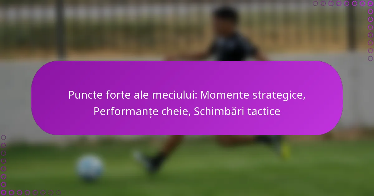 Puncte forte ale meciului: Momente strategice, Performanțe cheie, Schimbări tactice