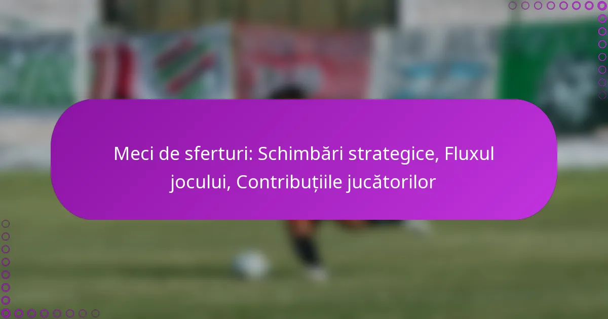 Meci de sferturi: Schimbări strategice, Fluxul jocului, Contribuțiile jucătorilor